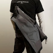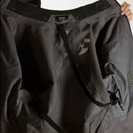 素材やパーツの研究開発にも積極的に取り組み、機能性を見事にカタチにしたウエアは、素材にゴアテックスの3レイヤー・プロシェルや防水ジップを多用しながら、フィッティングやシルエットに影響を与えないように、ほかにはないオリジナルの細いシーリングテープを使用するなど、そのオリジナリティは無限で、いくつもの機能に驚かされる、まさに進化するオールラウンドの服である。