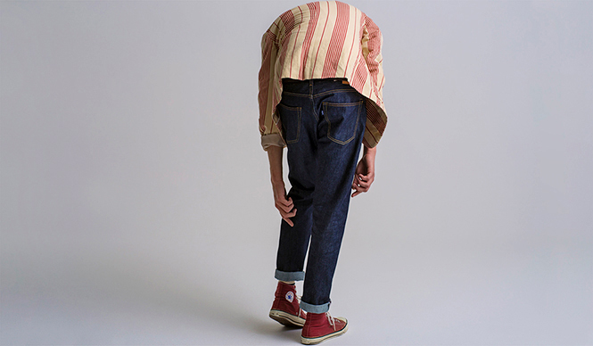 そしてボトムスは、「Thumb Tack Cropped」のリジッドタイプ。アーキュエイトステッチがポケット裏に隠れていて、履き込むと徐々に浮き上がってくるというギミックも気が利いています。ヴィンテージクロージングに抵抗のある人でも取り入れやすい、今っぽい丈感とシルエットもポイントです。
