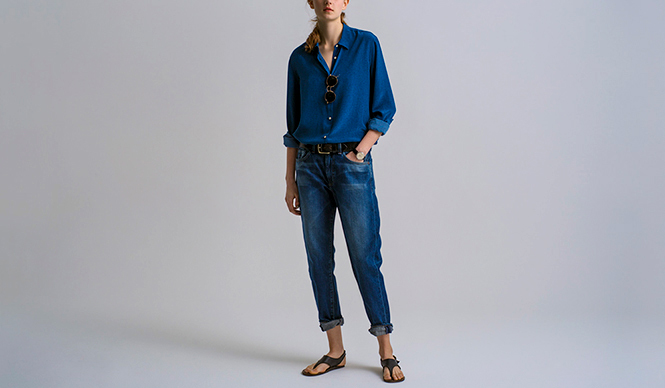 ボタンは大胆に開けて、品よくセクシーに魅せたい。ボトムスに合わせるなら、先シーズン自分用にも購入したボーイフレンドデニム系の新作、「Beau Boyfriend」がいいと思います。