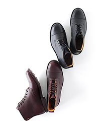 特筆すべきアイテムのひとつに、「トリッカーズ」とのコラボレーションが挙げられる。グッドイヤーウェルテッド製法による堅牢な作り込みと、ボリューミーなフォルムでファッション通から高い人気を誇る、英国ノーザンプトンのシューメーカーだ。