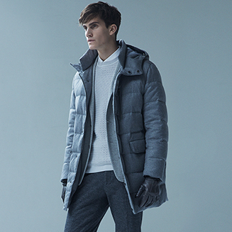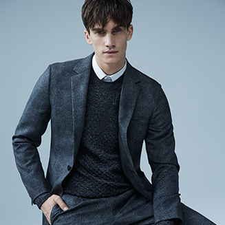 クリーンなイメージと優しげな印象が漂うライトグレーは、カルバン・クライン プラティナム・レーベルが得意とするカラーパレット。ぜひ、トーン・オン・トーンのコーディネートで着こなしてほしい。
