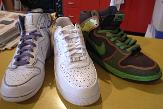 左から、DUNKデラソール限定コラボモデル、NIKE IDでつくったAIR FORCE 1、NIKE IDでつくったDUNK