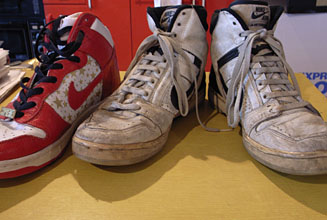 はじめて買ったAIR FORCE1は、ビームスで82年頃だったと記憶しています。それはさすがに捨ててしまったけど、この右の汚れているのは86、87年頃のものだと思います。