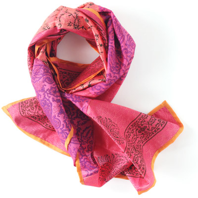 自分の欲しいものやテイストが確立されているオトナの女性のために、上質でひねりの効いたアイテムを揃えるこのブランドからも、インドで織られたシルクのストールが登場している。鮮明なカラーのうえにすこし控えめにアレンジされたインド由来のモチーフは、あわせる服を選ばない“ちょうどいい”エスニック感。大きめなサイズ感も使い勝手がいい。