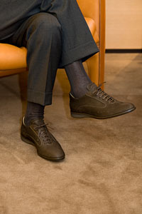 山野 僕はいま、ダークブラウンを履いていますが、明るい茶もいいですね。とくに明るい色のジャケットを着たときには、こっちのほうが似合うでしょう。