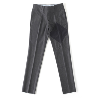 片足だけにアーガイルのパッチワークが施されているユニークなデザイン。パンツ JP-092203-01 2万9400円
