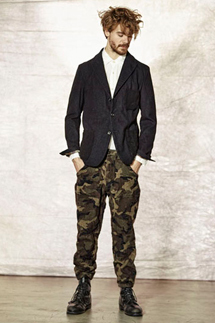 今シーズンのテーマは、“Vintage Classic(ヴィンテージクラシック)”。「光と影」、「表社会と裏社会」、「混沌」からのインスピレーションで、あたらしいものが次々と生まれ、目まぐるしい発展を遂げるのと並行して、その反動で荒んだ部分も徐々に露呈していく混沌とした社会情勢を表現しました。2014年春夏から引きつづき、対比する、または異なるテイスト、異なる素材を組み合わせたパッチワークやシルエット、素材、ステッチなど、デザインバランスの妙技、後染め、バイオ加工、パッカリングに代表される計算された加工テクニックも駆使しています。