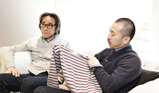 吊り編み機に特殊な糸の切り替え装置を組み合わせることによって実現した「LWクラシックボーダー吊り天竺」。とてもやわらかな肌触りをもち、その着心地を存分に体感したくなるようなアイテムだ。今回ルモアズ別注でオーダーしたグレーメランジ×パープルという限定カラーのリリースを機に、このカットソーがもつ秘密を、ループウィラー代表・鈴木諭氏に、ルモアズのディレクターを務める松本博幸が聞いた。