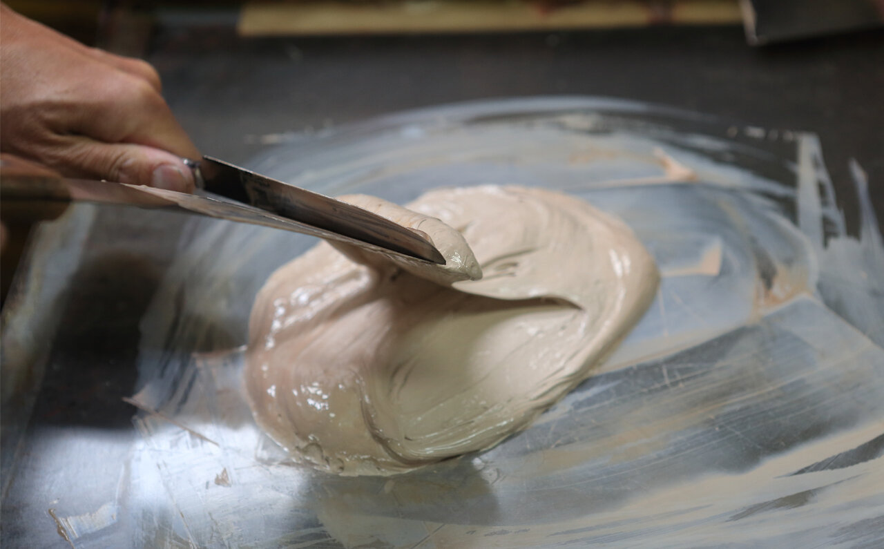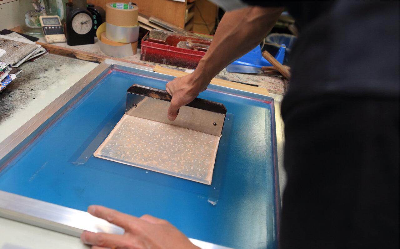 日本の伝統的な柄を漆であしらった鹿革の工芸品である印伝。16~17世紀頃にインドから日本へ伝わり、甲州印伝の技法を確立したのが上原勇七であった。1582年の創業から家長代々その名が受け継がれ、このたび現代表取締役社長の上原重樹氏が14代目を襲名する予定だ。今回はその実弟にあたる伊三男氏に、本コラボの経緯から印傳屋のこれからについて話を伺い、生産現場へも足を踏み入れた。