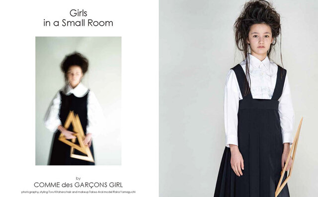北原 PLEASEではお馴染みのCOMME des GARÇONS GIRLのページはずっと二人以上での撮影だったのですが、今回は初めて一人でした。それも小学5年生! の山口らいらさん。びっくりでしたね。驚異の小学生(笑)。小学生でCOMME des GARÇONS GIRLを着てファッション誌に登場するなんて、ぼくには考えられなかった。だけれど、ぼくがキャスティングしたんですが(笑)。これも見ていただくしかないですね。かわいいですよ!