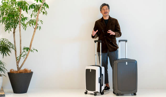「海外に行くと、ファッション業界人のほとんどが同じブランドのトロリーを使っていますね。そのブランドのトロリーはよくウィールが壊れるようで、空港や街中で引き摺っている姿を見かけます。海外のトランジットでは、トロリーは手荒に扱われていますからね。ですから、僕はハードタイプのトロリーにいい印象を持っていなくて、これまでずっと2輪のソフトタイプのキャリーを愛用していたのです」