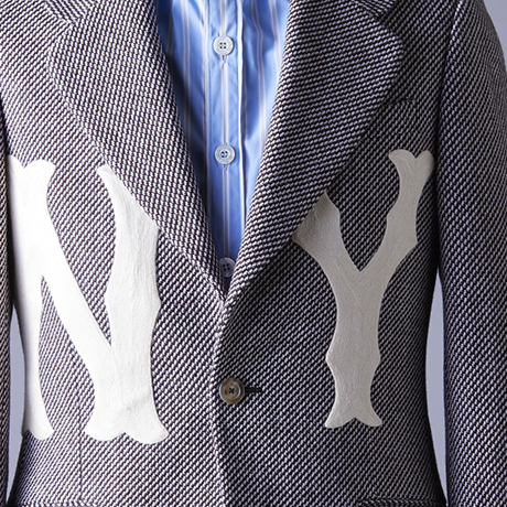 ニューヨーク・ヤンキースのエンブロイダリーをダイナミックにあしらったジャケットは、今秋冬に実現したメジャーリーグ・ベースボールとのコラボレーション。ウエストがほどよくシェイプされた2ボタンのクラシカルなルックスに、モダンなインパクトを添えている。