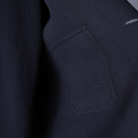 膝上丈のコートは、大きめのボタンや細めのラペルがモダンなムードを添える一着。カシミヤのダブルフェイスなので軽くて着心地もナイス。シンプルなので、着回しやレイヤードにも大いに活躍してくれそうだ。