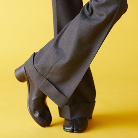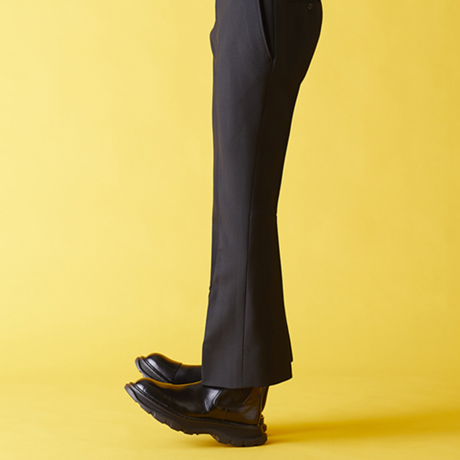 祐真「フレアパンツはここ数シーズンよく穿いていて、今秋冬もマイブームが継続中です。キレイに穿くためにはポイントが2つあって、僕はいつも腰回りと足元に気をつけています。