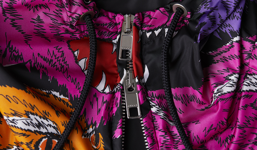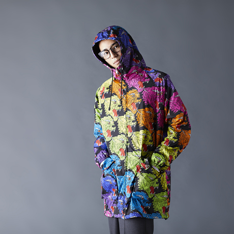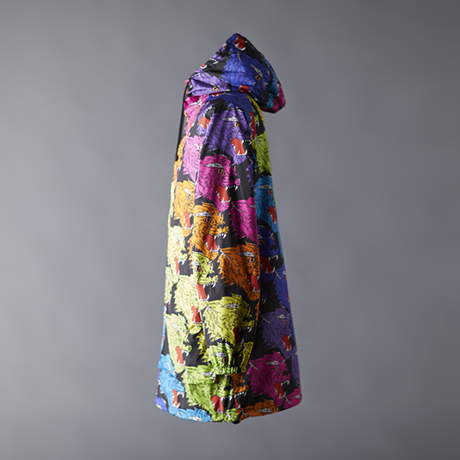 80年代のムードを感じさせるリアルなパンサーフェイスを、鮮やかなレインボーカラーと共にプリントした膝上丈のナイロンコート。ドローストリング付きのフードや……