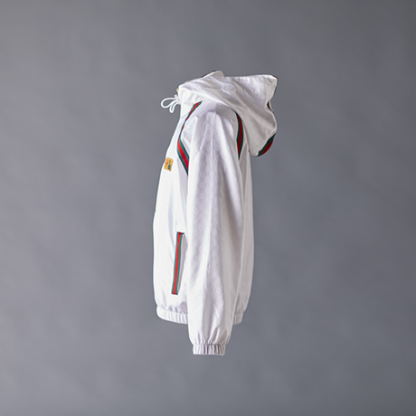 祐真「最近にわかに人気が高まっているナイロン素材のフーディ。昔はウインドブレーカーと呼ばれ、ちょっと前まではスポーツブランドにしか存在しなかったアイテムですが、今では多くのラグジュアリーブランドがリリース。カラーリングやグラフィックのバリエーションも豊富で、面白いものがたくさん見受けられます。