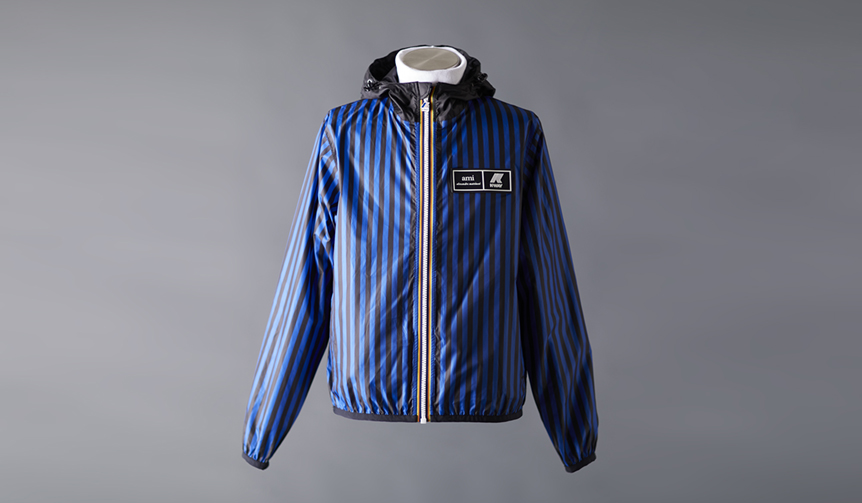 フランス発祥のレインウェアブランド「K-WAY」とのコラボレーションブルゾン。軽くてテクニカルな素材が特徴で、amiらしいストライプをボディに配したフーディは……