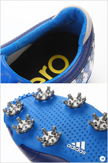 ゴルフシューズ「adizero tour」は、2月1日に世界同時発売されたモデルで、10クリーツ(スパイクピン)のツアーフットウェアとしてはアディダスゴルフ史上最軽量となる 300グラム(25.5cm)という、徹底した軽量化と安定性を実現したメンズゴルフフットウェア。