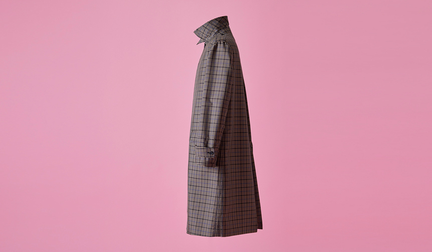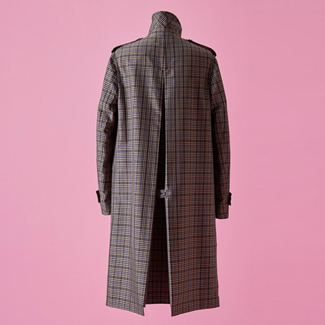 比翼フロントと張り感のある素材でミニマムに仕上げたチェック柄のトレンチコート。スリムフィットで背中にボックスプリーツが入っているので……