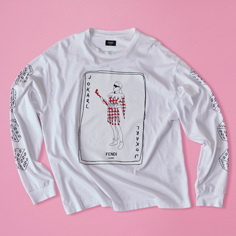 カール氏がフェンディのデザイナーに就任したのは1965年。僕が生まれた年と同年ですから、その間ずっと第一線で活躍されていたということも驚きです。エレガントで贅沢なウィメンズのコレクションピースも好きですが、面白いなと思うのは、今回ピックアップしたFFモチーフやトランプモチーフのプリントアイテム。特にご本人をジョーカーにした『JOKARL』のイラストは『え、ダジャレ!?』と思わず二度見したほどです。