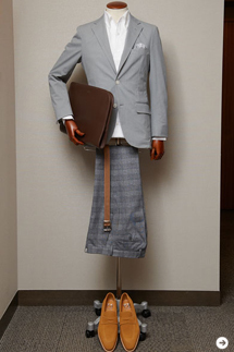 そのポイントとなるのは、トラディショナルをベースとした“クール”で“知的”な男性を象徴としたビジネススタイル=「COOL GENTRY(クールジェントリー)」。ジャケットやスラックスでは、グレンチェックやハウンドトゥースを、シャツでは、ロンドンストライプ柄など「英国伝統柄」をスタイリングのどこかに取り入れたスタイルで、コーディネイトのキーとなる靴、バッグ、ベルトは茶のバリエーションで揃えるのが旬。