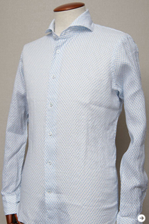 たしかにシャツも無地とストライプが主流ですが、今回私がとくにお薦めするシャツは、麻のザクッとした素材で小紋の花柄のもの。柄といっても相手に強く印象に残るものではなく、素材と柄が良いバランスでエレガントさを香らせます。