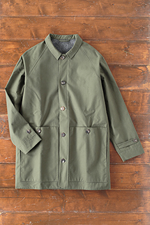 マンチェスターで開発された防水のベンタイル生地、裏地にはヨークシャーにある皇室御用達の称号をもつ工場で織られたウールメルトンを採用した。ワークテイストの大きなポケットを配するいっぽうで、衿は小さめというバランスが個性的。ジャーナル スタンダード別注カラー