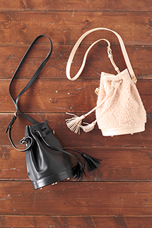 同ブランドは、現時点においてデザインは巾着型の1型のみという点もユニーク。しかし、さまざまな高級素材を使いオリジナルの配色で見せているため、ラインナップは豊富であざやか。デザインの原型となっているのは、第二次世界大戦時にアメリカ軍が使用していたバッグで、1970年代にハリウッド女優のあいだで流行った往年のフォルム。ここ最近、ふたたび巾着型が注目されているなかで、トレンド性もおさえている。