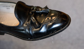 カーフ、コードバンの靴を撥水効果により、水分や汚れから皮革を保護