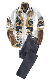 自分の着こなしでは、人が着ないものを着ようと思っています。男は歳を取ったらけっこう何を着ても似合うようになるもの。僕たちのような服を生業とする者は、プロとして仕事している以上、着ているモノにステイトメントが必要で、ひとつやふたつ言いたいことがないと。プロが流行を追いかけるようじゃ、しょうがない。皆さんもそういう意識で着こなすと、また違ったコーディネイトが見えてくるはずです。
