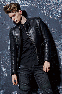 さらにカラーでは、今シーズンは黒が復活。阪急メンズでは、8月のテーマを「URBAN RIDER」としてレザーの上質な黒の光沢感に、ウォームカラーを合わせるコーディネイトを提案している。着こなしのイメージは、“シックな顔してアクティブなスマート肉食男子”だ。