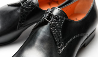 さらに、過去に「ENZO BONAFE(エンツォ・ボナフェ)」と伊勢丹で製作したラスト(木型)「ISラスト」をリバイバルさせたモンクシューズや、「Santoni(サントーニ)」が得意なクロコダイルとのコンビネーションの新作、ありそうでなかった“黒エナメルのグッドイヤー”を実現した「CARMINA(カルミナ)」、バックルの素材にシルバー925を使った「Otsuka since 1872(オーツカ シンス 1872)」のブーツなど、精悍な黒の靴がラインナップする。