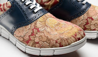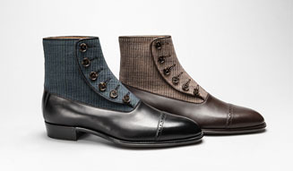 さらに、三越伊勢丹が取り組んでいる「JAPAN SENSES(ジャパン センスィズ)」の一環として、老舗×老舗のコラボレーションを企画し、東北地方を回ったところ、会津木綿と出合いました。日本のモノづくりを応援して世界に広げたいという主旨に賛同いただき、「大塚製靴×会津木綿」のボタンブーツが実現。クラシックなデザインに伝統の会津木綿を合わせました。今季限定生産ですので、お早めにどうぞ。