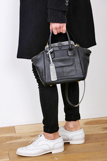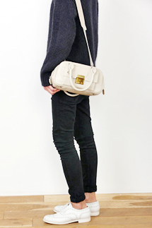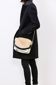 写真上左の「GIANNA」も今シーズンの新作で、ムートンとスムースレザーの異素材でアクセントをつけたコンビネーションバッグ。長さの異なるどちらも取り外し可能なショルダー付きで、着こなしに合わせて自由に持てるのがうれしい。