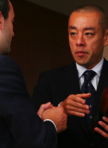 「コンニチハ、はじめまして、松尾です。英語が下手ですみません」と情けなく切り出すと、