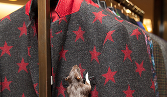 期間中には、英国の注目ブランド「Holland Esquire(ホーランド エスクワイヤー)」によるポップアップショップが開かれた。伝統的なブリティッシュスタイルをベースにしたこのブランドは、2013年秋冬シーズンに日本に上陸。イギリスのMOON社やLIBERTY社によるエクスクルーシブの生地を使った、遊び心のあるデザインが話題を集めている。今回は、大胆な星柄のテーラードジャケットや大きな格子柄のチェスターフィールドコートなどがラインナップされ、会場に訪れた人たちの関心を集めていた。