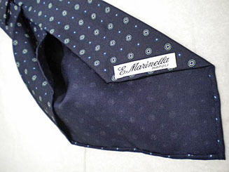 マリネッラのパーソナルオーダー会も好評のうちに終了した丸の内ブリックスクエアの「ソルフェリーノ」に、マリネッラの“一枚仕立て=スフォデラータ”ネクタイが入荷。裏地をなくすことで重量感は抑えつつ、美しい立体感を楽しむことができる。