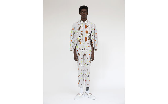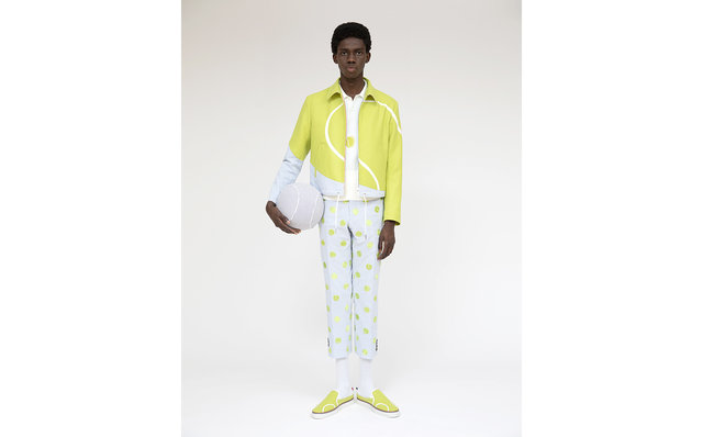 コンパクトでボディコンシャスなセットアップや、ダイナミックなフォルムに仕立てたジャケットのほか、ポップなマリンモチーフが描かれたスーツや、バスケットボールやラグビーボールをそのまま象ったバッグなど、遊び心に溢れたコレクションだ。