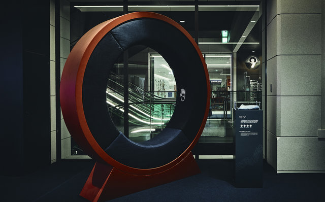 7つのブランドに提供した、7つの異なるテクノロジー(特許)で織られたデニムの、7つの「デニム・サウンド」を音響、触覚、視覚のすべてを生かしインタラクティブ形式で体験できるのだ。