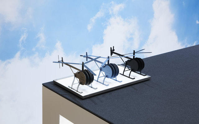 リモワのシグネチャーであるアルミニウムグレーのロゴが際立つ本物のヘリコプターがブティックの中央でゲストを迎える。このヘリコプターはカスタマイズされている特別仕様だ。