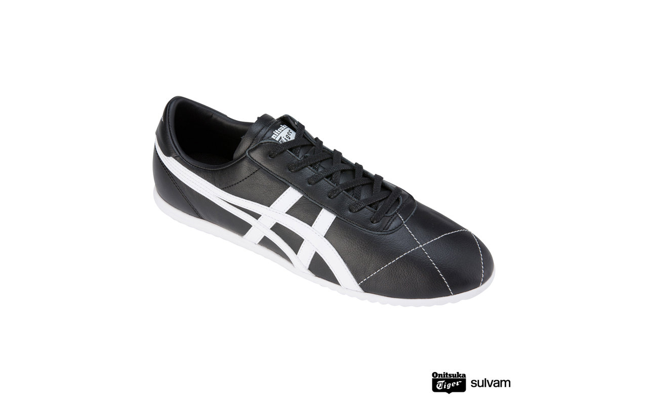 オニツカタイガーとsulvamのロゴがプリントされたホワイト×ブラックのテープが配され、スタイリッシュでスポーティなスタイルに仕上げられた。