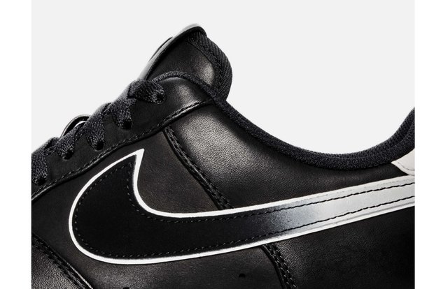 上質な黒のレザーアッパーには、リフレクティブ素材のスウォッシュなど繊細なアクセントが、白と黒の2色であしらわれている。