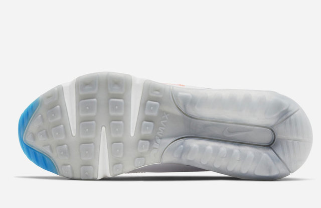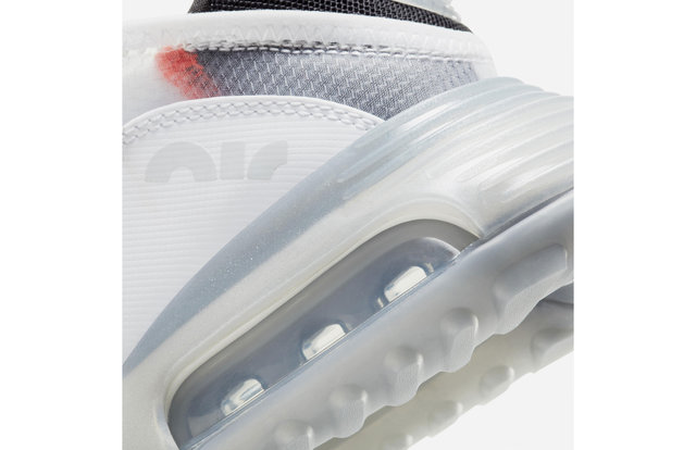 カラーブロッキングは、ナイキ エア マックス 90に比べて素材の透明度が変更されている。最もサポート性の高い部分の素材の透明度をゼロに、低い部分をシースルーにすることで構造上の重要性が強調されたデザインに仕上がった。