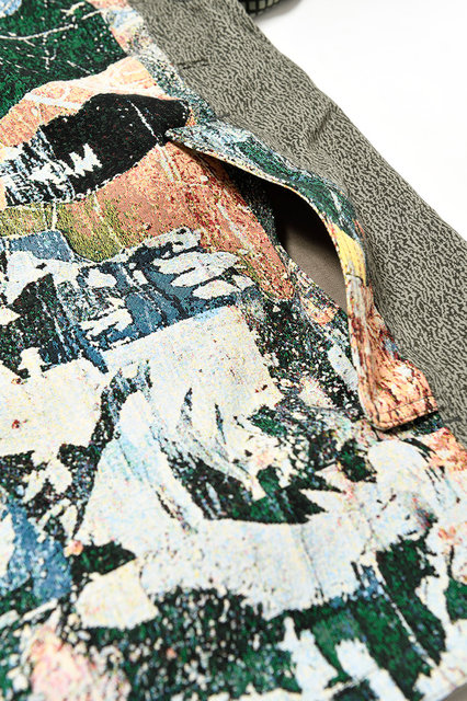背面のアートワークをプリントではなく、ジャガードテキスタイルによるもの。両者のこだわりが詰まった一着は、気軽に身に付けられるアート作品といっても過言ではないだろう。