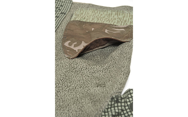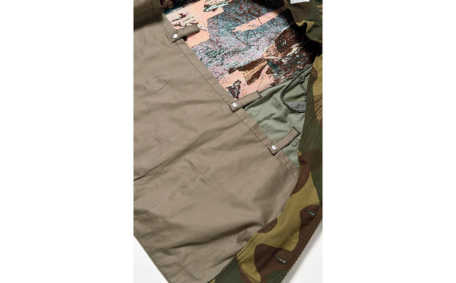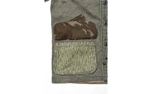 8種類のカモフラージュ生地をクレイジーパターンで楽しめる一着