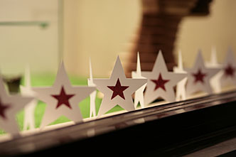 コンティニュエ 店のウインドウディスプレイと連動した白が基調の星のデザインのカードです。とってもステキですよ。