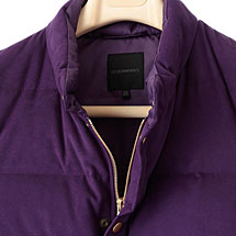 今季のデザインワークスのテーマ“スポーツ・ミリタリーをラグジュアリーに提案”のキーとなるこのダウンベストは、コーディネイトの仕上げとしてインパクトを与えるアイテムとなっている。