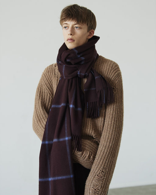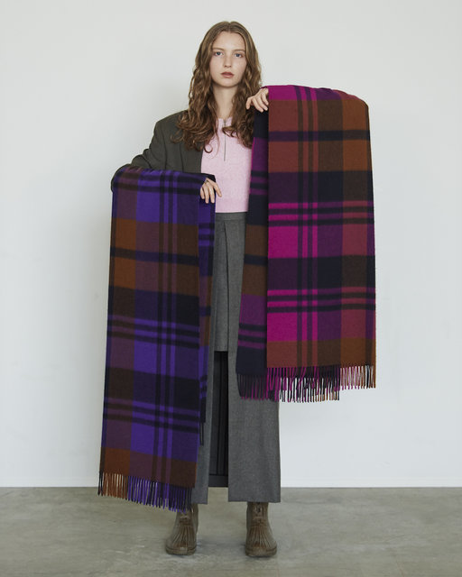 密度が高く、丁寧な起毛を施したカシミヤストールは、生地生産を背景に持つジョシュア・エリスならではのクオリティ。ブラックウォッチやロイヤルスチュアートといった英国伝統のタータンチェックを現代的にアレンジしたパターンは、トラッドとトレンドの絶妙なバランスが魅力的だ。
