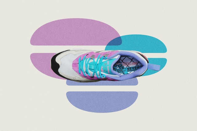 ヒール部分にはマカロンモチーフのグラフィックをあしらい、インソールにはスタジオ セブンのアイコンである「Caution Logo(コーションロゴ)」とミタスニーカーズのアイコンである「Chain Link Fence(金網)」、そして今回のトリプルコラボを証明する3ブランドのロゴマークを配した。