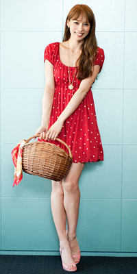 SONOMI 今日はフレンチ寄りのガーリーですね。バッグもカゴバッグで。最近赤が好きなんです。20代のころはあまり好きじゃなかったんですけどね。